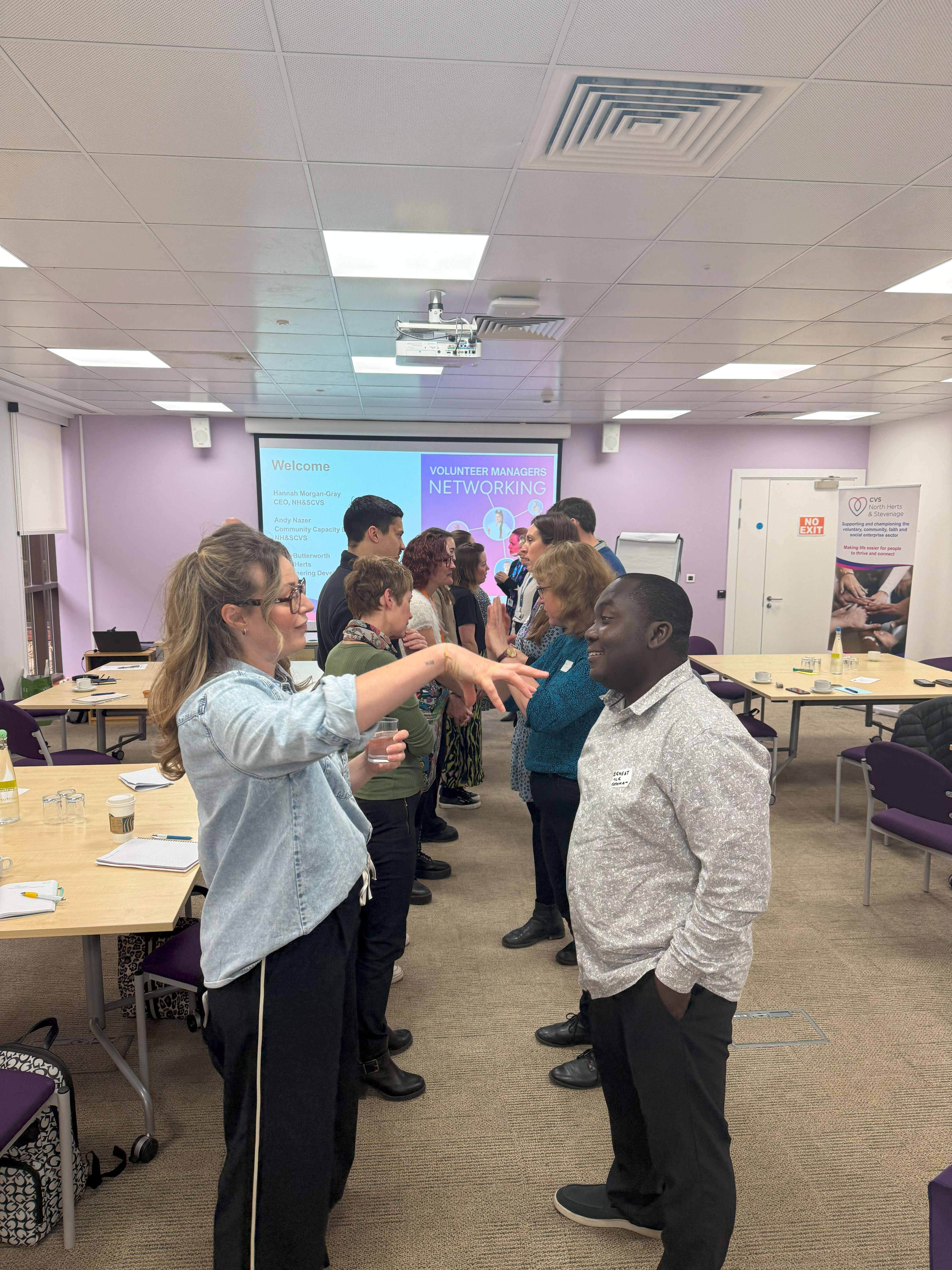 GoVolHerts joined North Herts & Stevenage CVS and around 20 volunteer managers from non-profit organisations across the county for a networking meeting where we discussed issues in volunteering and the volunteer management role - organising the participation of volunteers, recruitment, supervision and engagement. After a speed-intro circle in which we learned who everyone was and how many volunteers they managed (from just a few to nearly 1000!) we shared our perspectives on volunteering trends, how we respond, the issues we face and our particular experiences and interests.