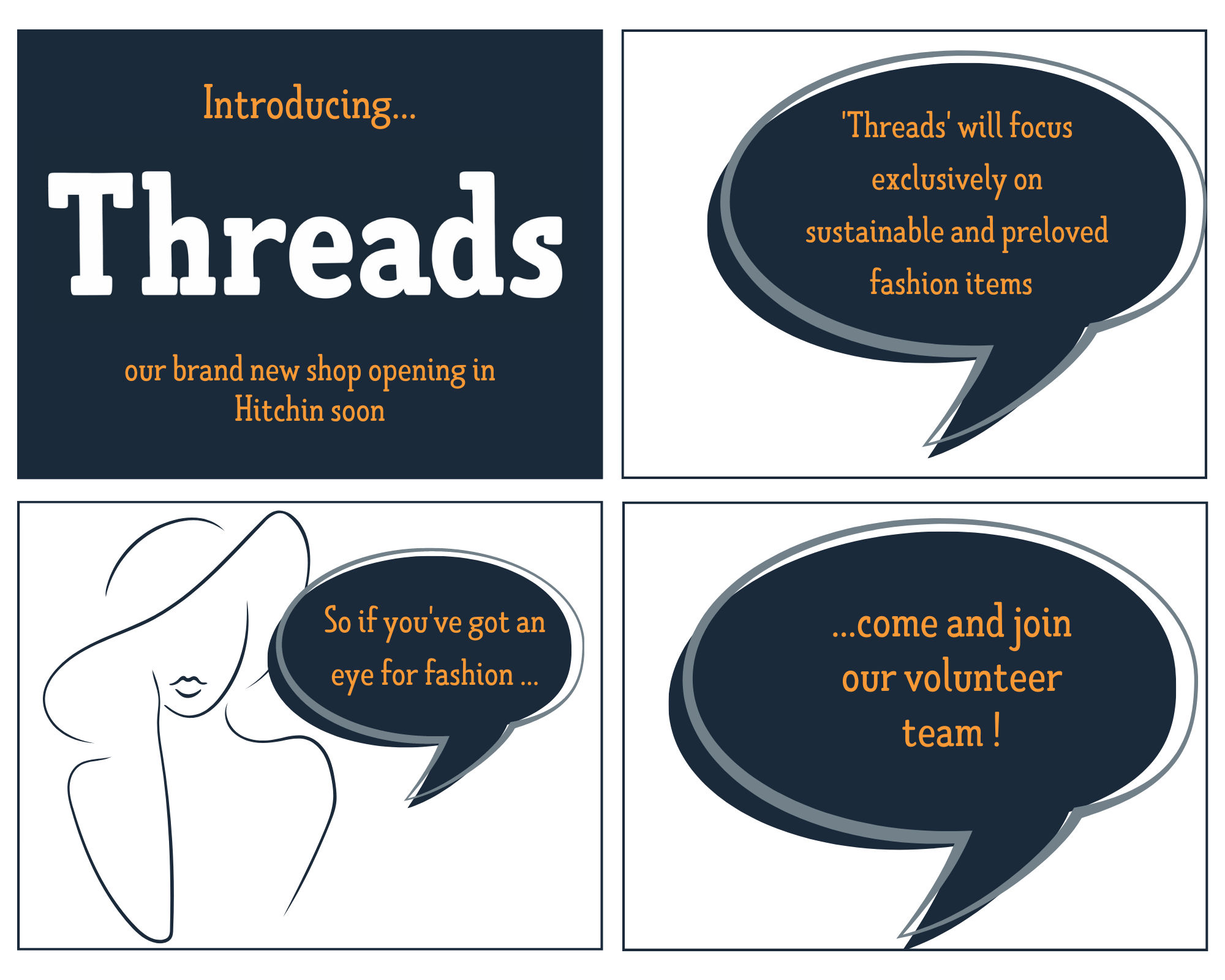 THREADS sells exclusively sustainable and pre-loved fashion items. We have various volunteer opportunities to support the successful running of this exciting new enterprise.